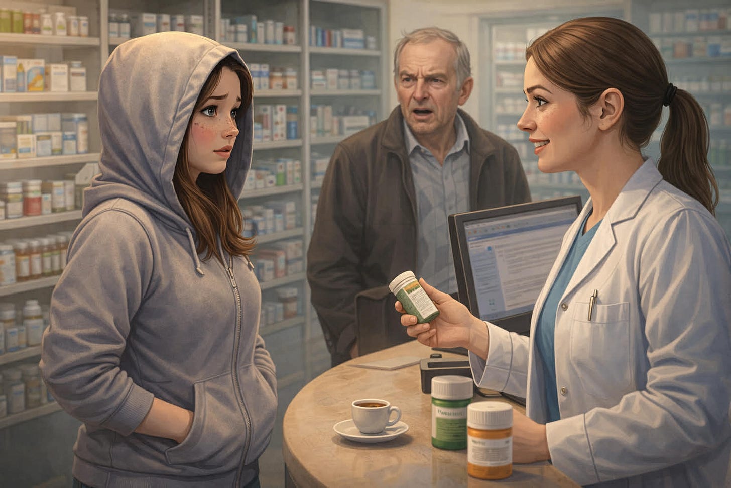 „Se mai întâmplă”, îi spune farmacista zâmbind.